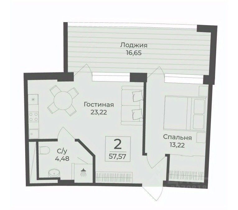Общая площадь57,6 м2