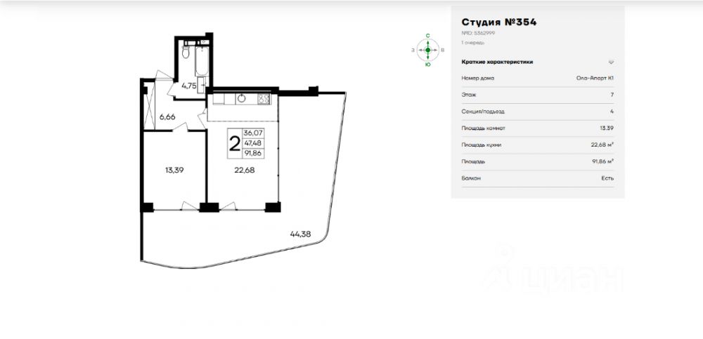 Общая площадь92 м2