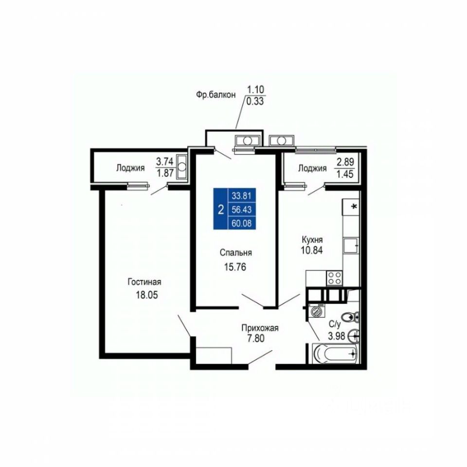 Общая площадь60,08 м2