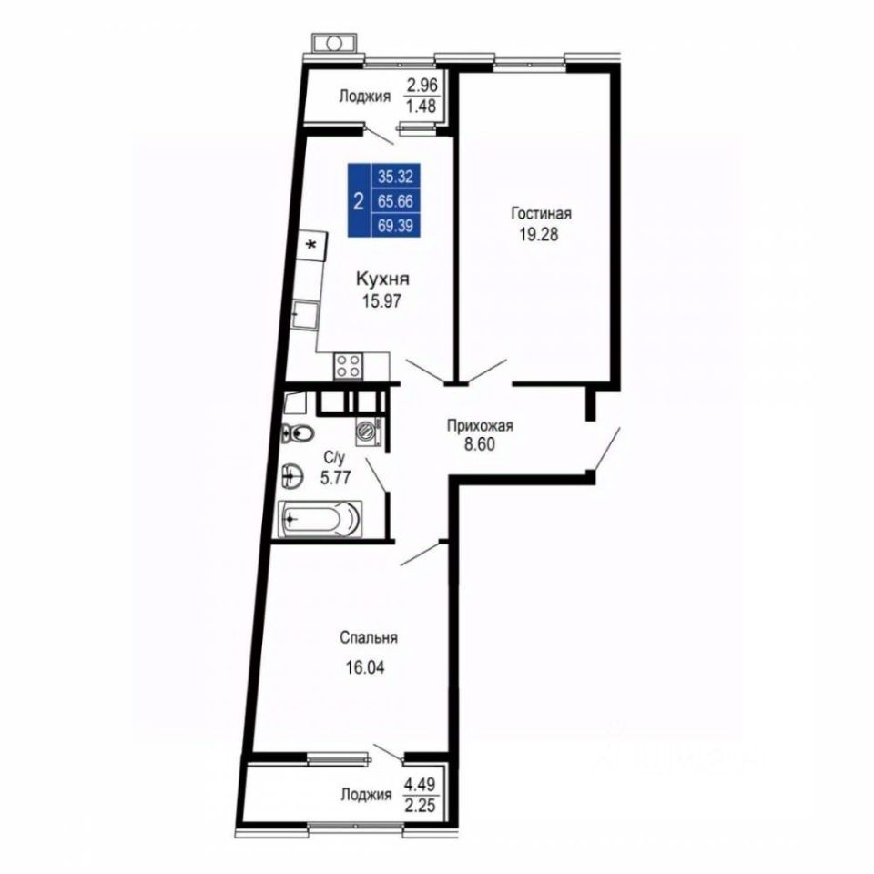 Общая площадь69,39 м2