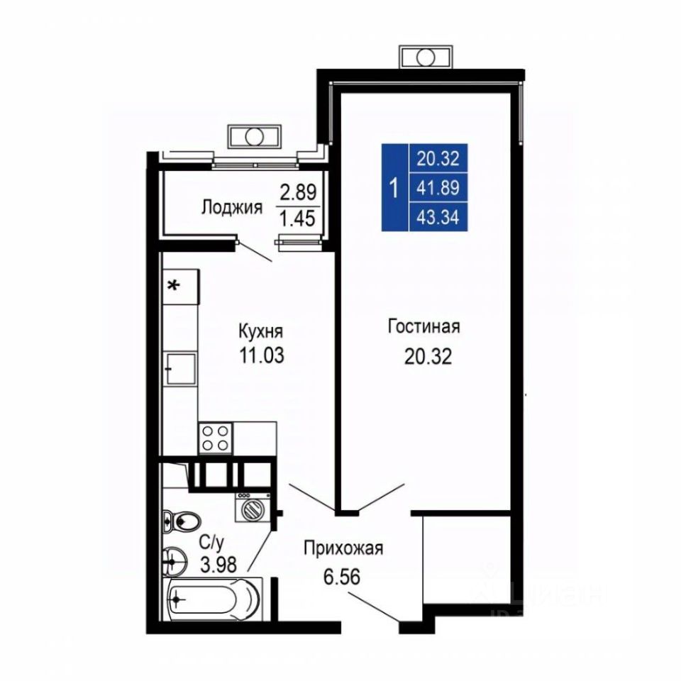 Общая площадь43,34 м2