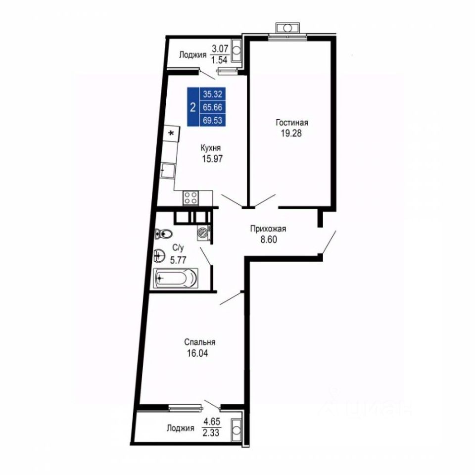 Общая площадь69,53 м2