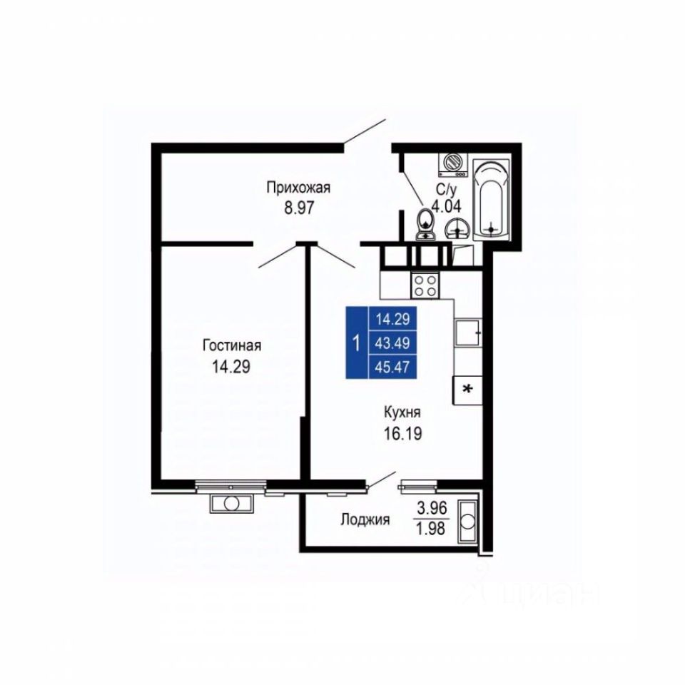 Общая площадь45,47 м2