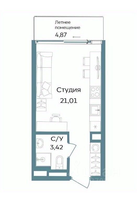 В строящемся кластере на первой береговой линии Tempo продаются отличные апартаменты (студия) с видом во двор, которые состоят из студии 21,0 м2, совмещенного санузла 3,4 м2, и балкона 4,9 м2. Общая площадь с балконом 29,3 м2.