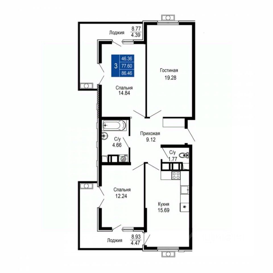 Общая площадь86,46 м2