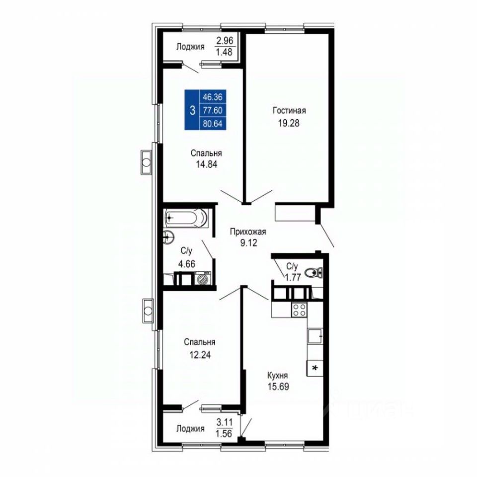 Общая площадь80,64 м2