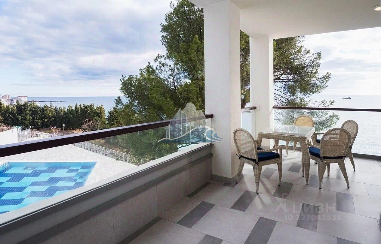 1131098 В продаже новый видовой апартамент класса ЛЮКС на море в центре Ялты! Дизайнерская отделка и мебель! Заходи и живи! Расположен в курортном комплексе ''Актер Парк-Отель'' на первой линии! Инфраструктура комплекса: круглогодичный бассейн, сауна и тренажерный зал, закрытая охраняемая территория, собственный пляж, протяженностью 100 м, реликтовый парк, ресторан, кафе, летняя анимация. Апартамент расположен на третьем этаже новой виллы - Чайка. В вилле круглосуточный ресепшн, открытый подогреваемый бассейн, тренажерный зал, СПА-зона, централизованное кондиционирование и отопление (собственная котельная). В апартаменте: кухня-гостиная, спальня, сан/узел, гардеробная комната и благоустроенная терраса 29 кв.м с видом на море и на бассейн. Срочная продажа!! Стоимость 35 000 000 руб.!