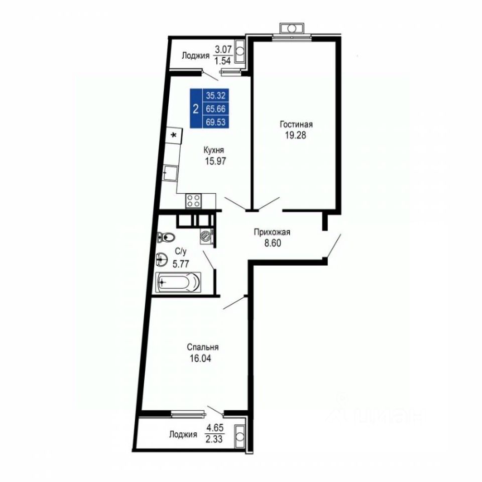 Общая площадь69,53 м2