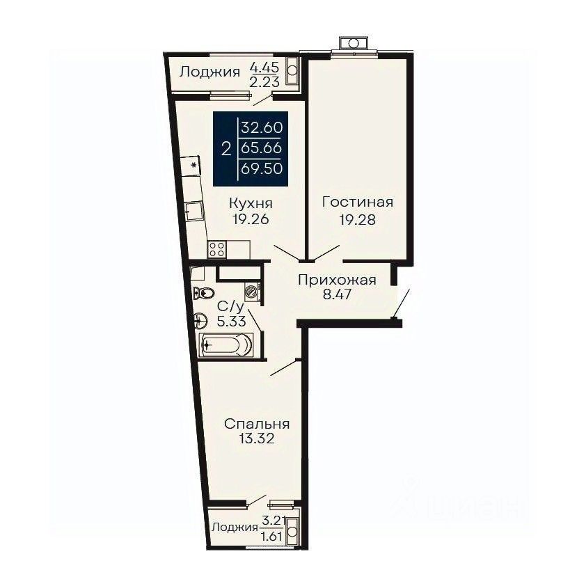Общая площадь69,5 м2
