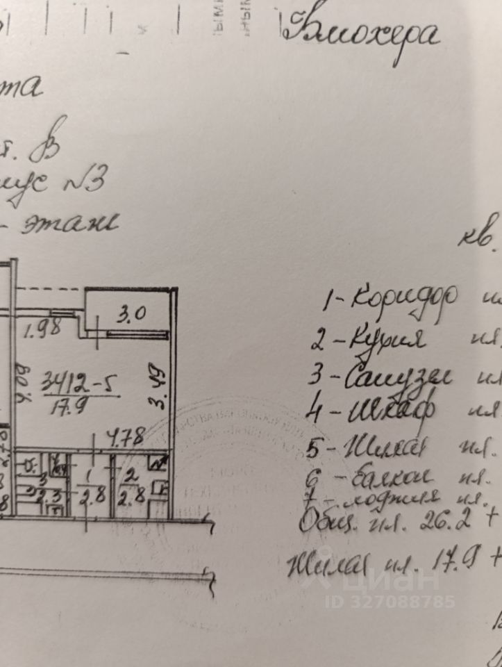 В комнате и прихожей встроенные шкафы и мебель на кухне (остается новому владельцу).