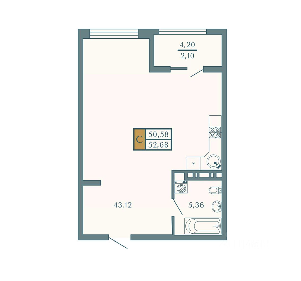 Общая площадь52,68 м2