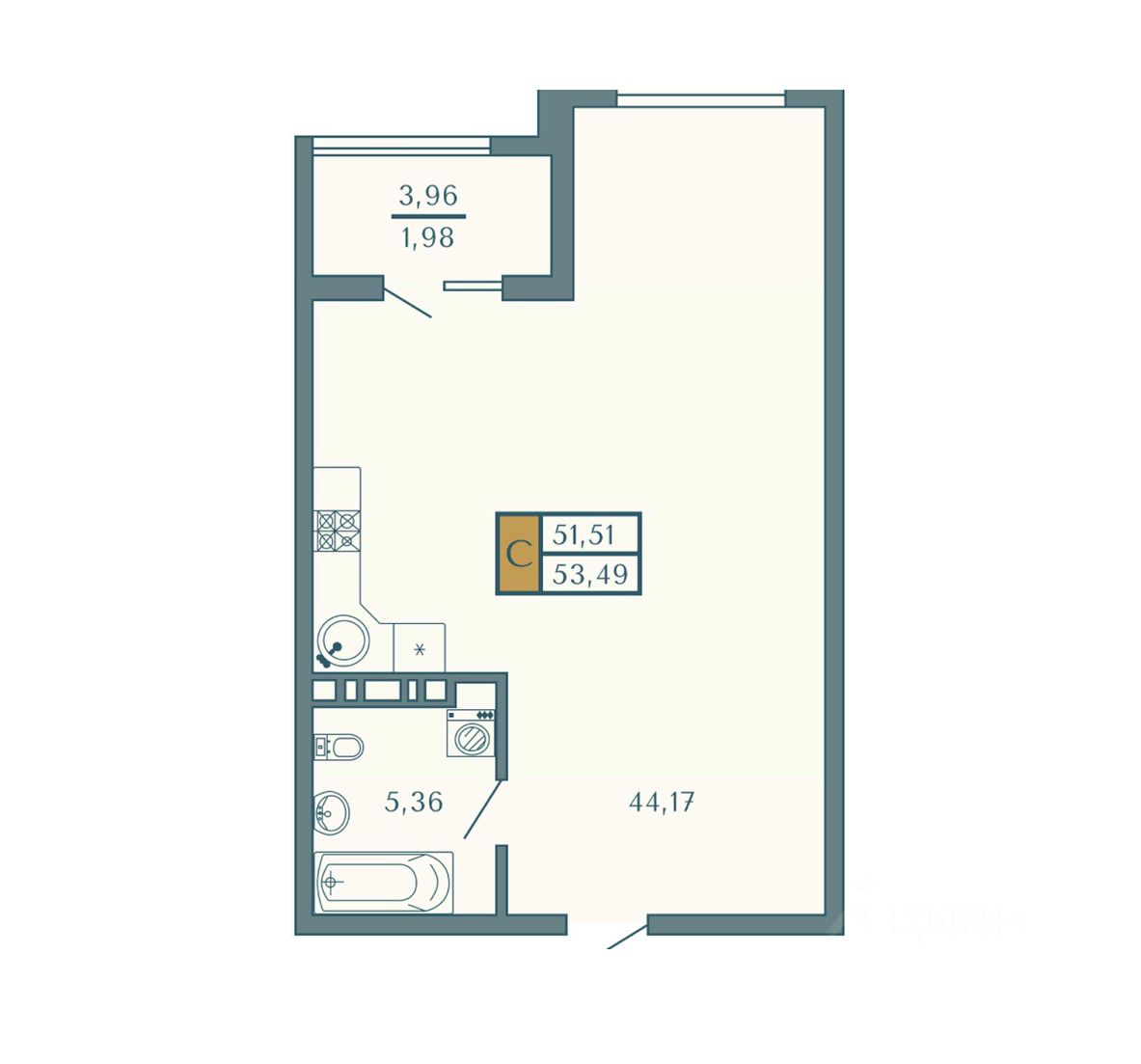 Общая площадь53,49 м2