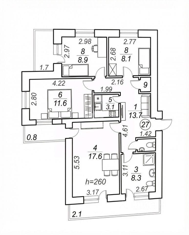 квартира под воплощения ваших дизайнерских фантазий !