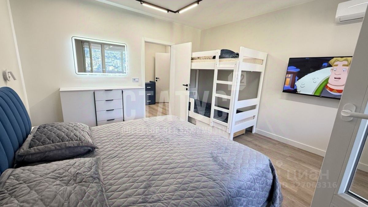 Сдаётся на круглый год комфортная, просторная однокомнатная квартира в новом ЖК Зенит. Квартира состоит из спальни с двуспальной кроватью и двухъярусной кроватью, большой кухни-столовой с раскладным диваном, санузла и большого застеклённого балкона. Отличный свежий ремонт, вся мебель и техника новая. В квартире имеется 2 телевизора и 2 кондиционера - в кухне и в комнате, посудомоечная машина, стиральная машина, микроволновка. Отопление от котельной комплекса. С балкона открывается живописный вид на горы и лес. Напротив комплекса остановка транспорта, продуктовый магазин и пункт Вайлдберрис, во дворе детская площадка, также рядом спортплощадка. В пяти минутах пешком супермаркет, в пешей доступности школа 2.