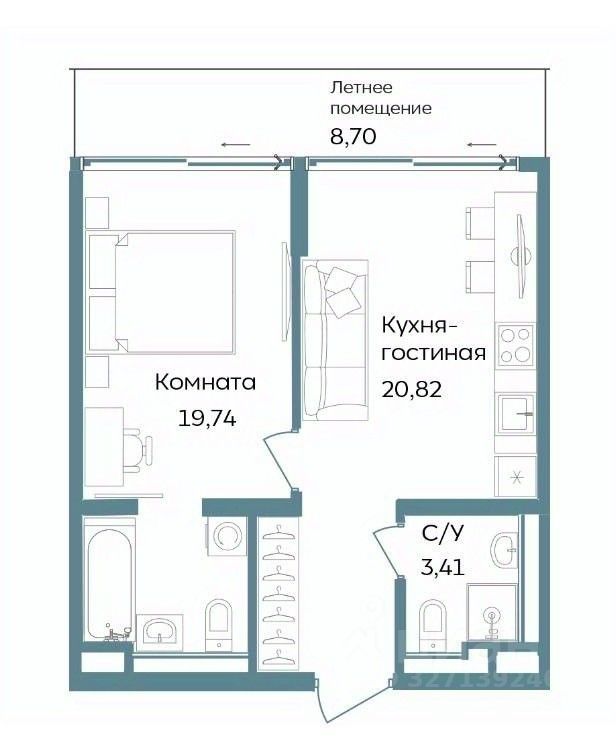 В строящемся кластере на первой береговой линии Tempo продаются отличные однокомнатные апартаменты с видом во двор, которые состоят из кухни-гостиной 20,8 м2, комнаты 14,7 м2, двух санузлов 5,0 и 3,4 м2, и балкона 8,7 м2. Общая площадь с балконом 52,6 м2.