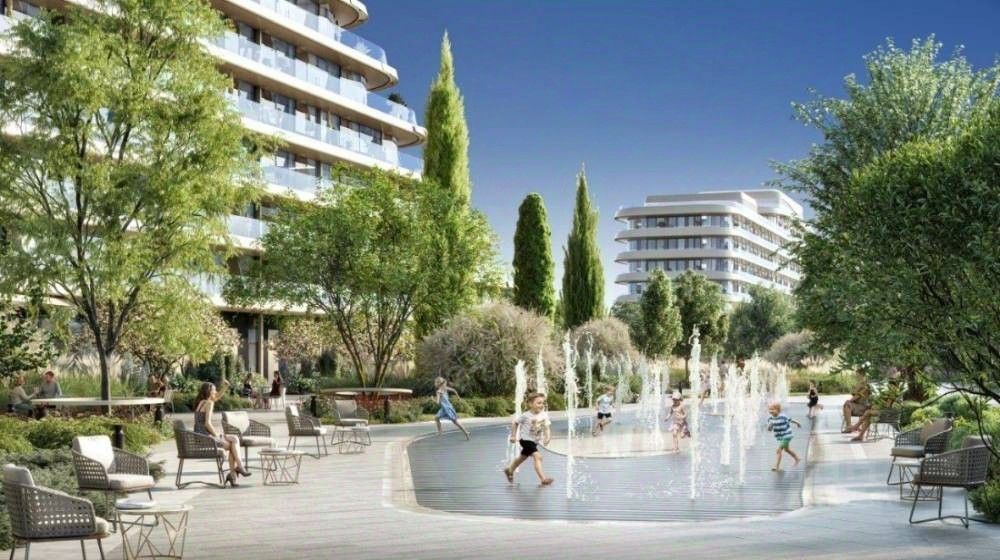 (детские игровые площадки, специально спроектированные для разных возрастных групп, прогулочная зона будет разделена на тематические секции. Также запланированы детский бассейн и двухуровневые площадки)