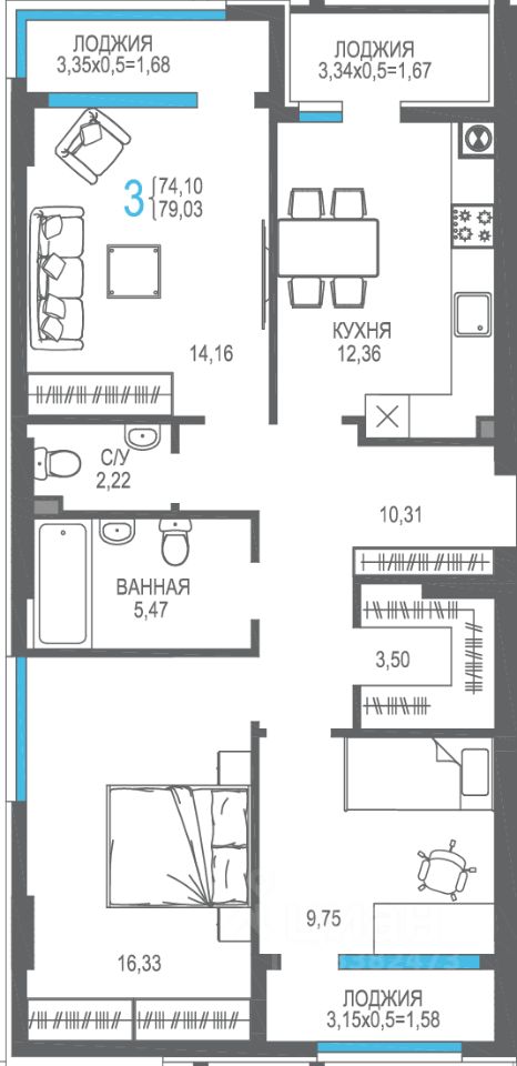 Продаётся 3-комнатная квартира в строящемся доме (Корпус 3), срок сдачи: I-кв. 2026, общей площадью 79.03 кв.м., на 1 этаже. Жилой комплекс ''На Фонтанке'' в городе Алушта на улице Багликова.