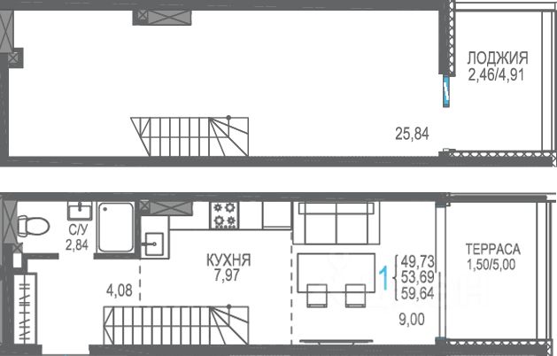 Общая площадь59,64 м2