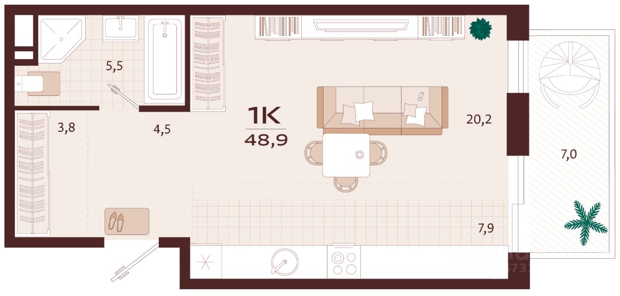 Продаётся 1-комнатная квартира в строящемся доме (Корпус 2), срок сдачи: II-кв. 2027, общей площадью 48.9 кв.м., на 6 этаже. Жилой комплекс бизнес-класса ''РОЯЛТА'' от застройщика ''ГК ТОЧНО'' в городе Ялта Республики Крым на улице Спендиарова.