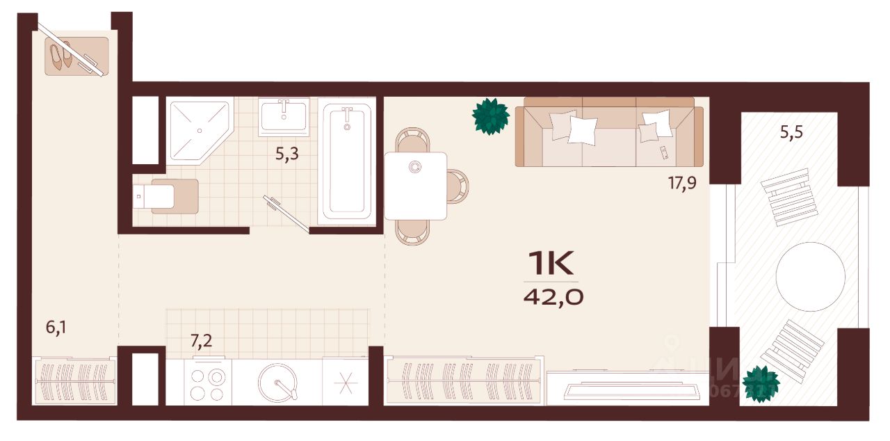 Продаётся 1-комнатная квартира в строящемся доме (Корпус 2), срок сдачи: II-кв. 2027, общей площадью 42 кв.м., на 6 этаже. Жилой комплекс бизнес-класса ''РОЯЛТА'' от застройщика ''ГК ТОЧНО'' в городе Ялта Республики Крым на улице Спендиарова.