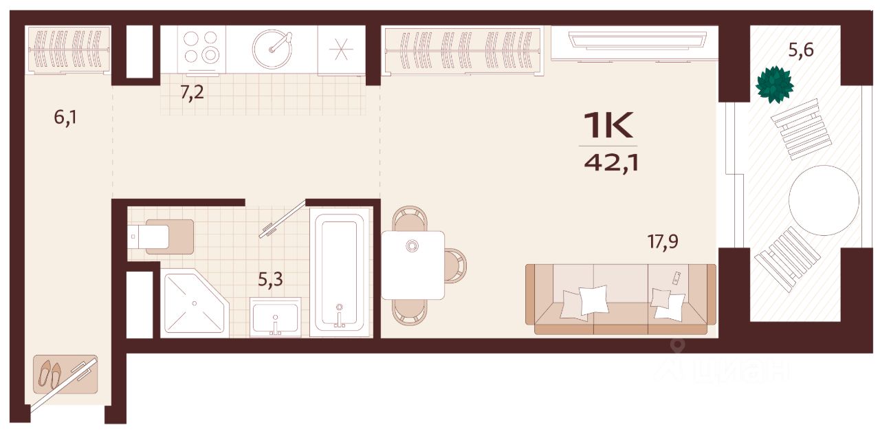 продам 1-к, имени Спендиарова, 520 894 000 ₽
