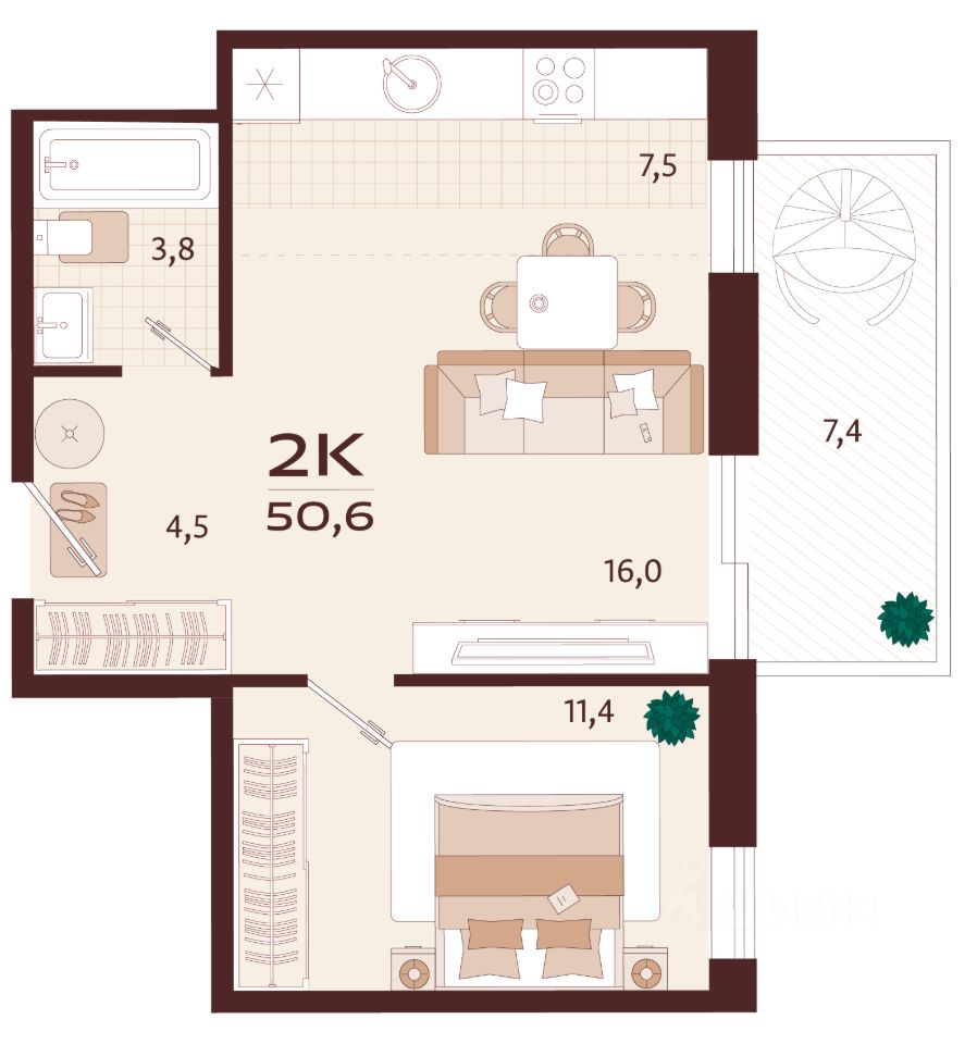 Продаётся 2-комнатная квартира в строящемся доме (Корпус 2), срок сдачи: II-кв. 2027, общей площадью 50.6 кв.м., на 5 этаже. Жилой комплекс бизнес-класса ''РОЯЛТА'' от застройщика ''ГК ТОЧНО'' в городе Ялта Республики Крым на улице Спендиарова.