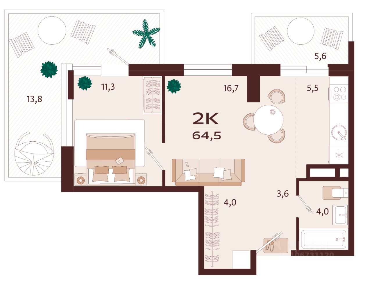Продаётся 2-комнатная квартира в строящемся доме (Корпус 2), срок сдачи: II-кв. 2027, общей площадью 64.5 кв.м., на 5 этаже. Жилой комплекс бизнес-класса ''РОЯЛТА'' от застройщика ''ГК ТОЧНО'' в городе Ялта Республики Крым на улице Спендиарова.