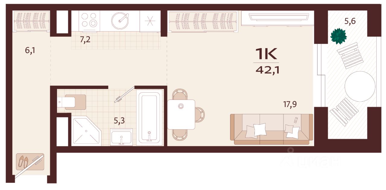 Продаётся 1-комнатная квартира в строящемся доме (Корпус 2), срок сдачи: II-кв. 2027, общей площадью 42.1 кв.м., на 3 этаже. Жилой комплекс бизнес-класса ''РОЯЛТА'' от застройщика ''ГК ТОЧНО'' в городе Ялта Республики Крым на улице Спендиарова.