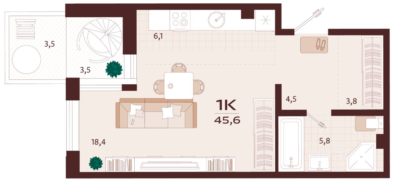 продам 1-к, имени Спендиарова, 521 164 000 ₽