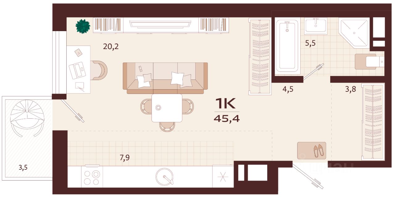 Продаётся 1-комнатная квартира в строящемся доме (Корпус 2), срок сдачи: II-кв. 2027, общей площадью 45.4 кв.м., на 6 этаже. Жилой комплекс бизнес-класса ''РОЯЛТА'' от застройщика ''ГК ТОЧНО'' в городе Ялта Республики Крым на улице Спендиарова.