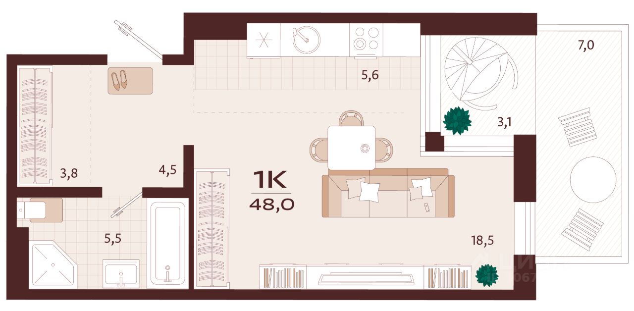 продам 1-к, имени Спендиарова, 524 483 000 ₽