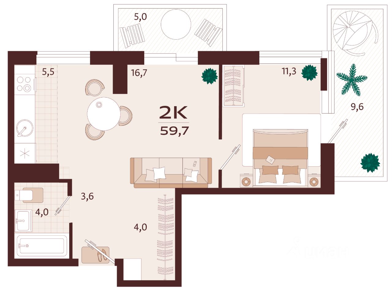 Продаётся 2-комнатная квартира в строящемся доме (Корпус 2), срок сдачи: II-кв. 2027, общей площадью 59.7 кв.м., на 6 этаже. Жилой комплекс бизнес-класса ''РОЯЛТА'' от застройщика ''ГК ТОЧНО'' в городе Ялта Республики Крым на улице Спендиарова.