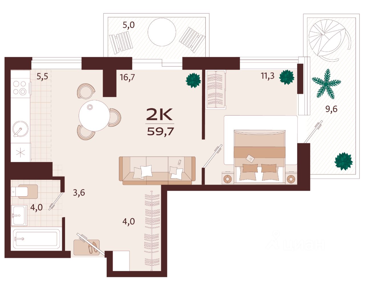 Продаётся 2-комнатная квартира в строящемся доме (Корпус 2), срок сдачи: II-кв. 2027, общей площадью 59.7 кв.м., на 4 этаже. Жилой комплекс бизнес-класса ''РОЯЛТА'' от застройщика ''ГК ТОЧНО'' в городе Ялта Республики Крым на улице Спендиарова.