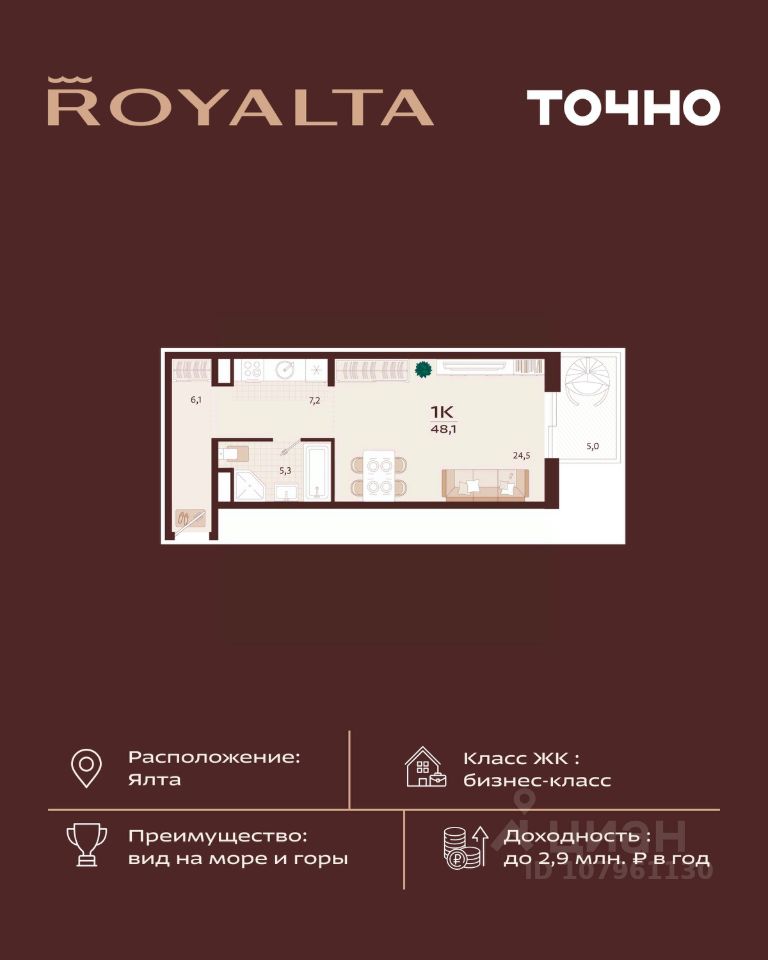 продам 1-к, имени Спендиарова, 524 313 000 ₽