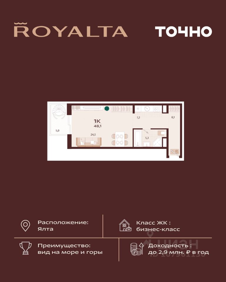 продам 1-к, имени Спендиарова, 521 661 000 ₽
