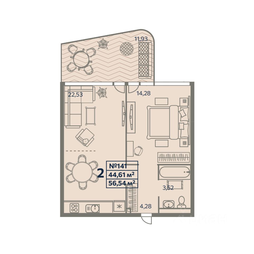 продам 1-к, Набережная, 6412 156 100 ₽