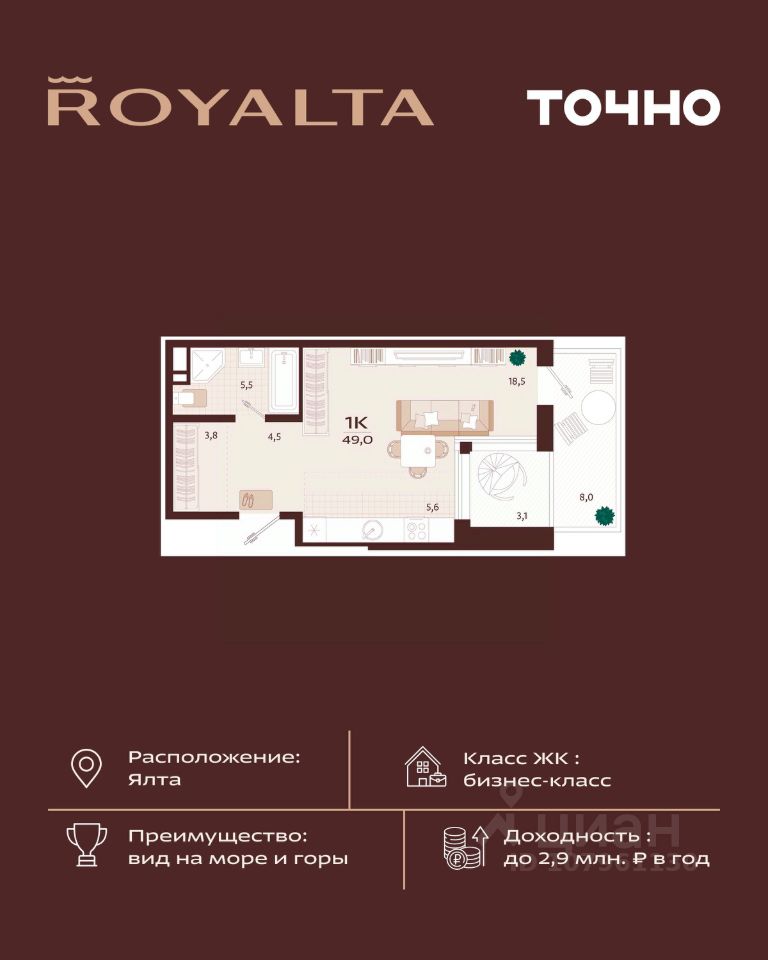 продам 1-к, имени Спендиарова, 523 867 000 ₽