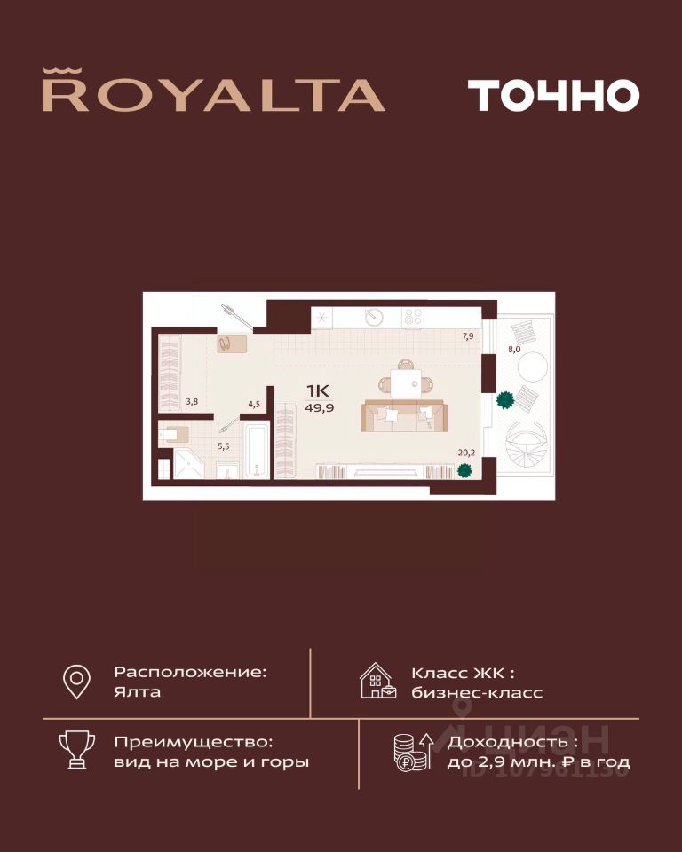 продам 1-к, имени Спендиарова, 525 911 000 ₽