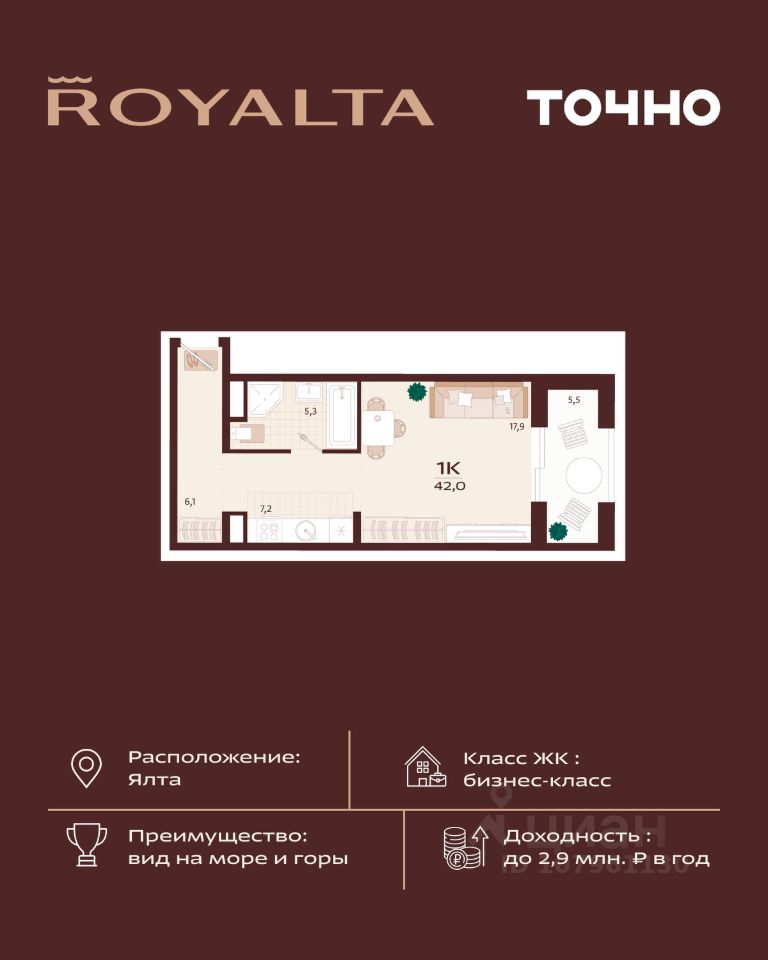 продам 1-к, имени Спендиарова, 521 229 000 ₽