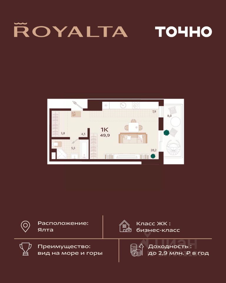 продам 1-к, имени Спендиарова, 526 828 000 ₽