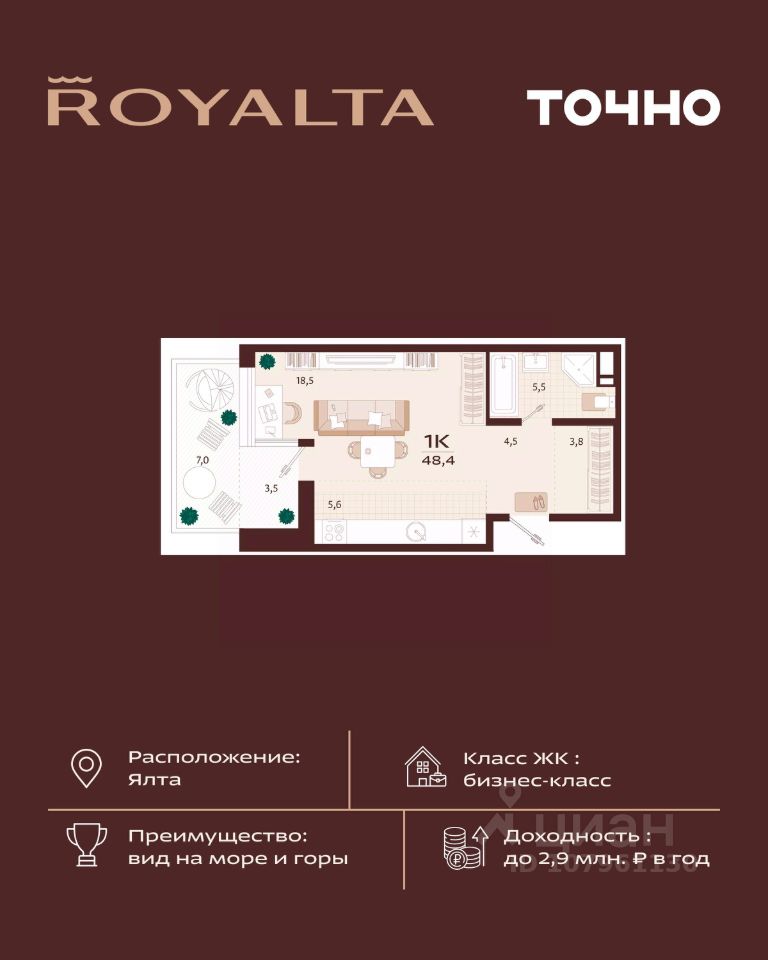 продам 1-к, имени Спендиарова, 522 463 000 ₽