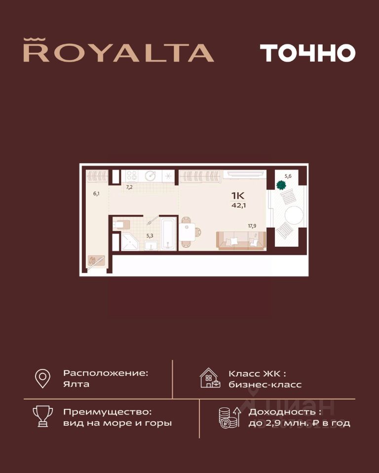 продам 1-к, имени Спендиарова, 520 894 000 ₽