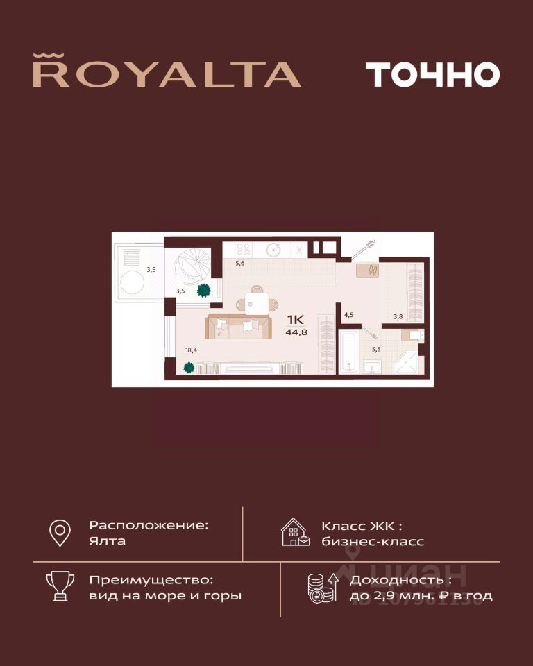 продам 1-к, имени Спендиарова, 522 851 000 ₽