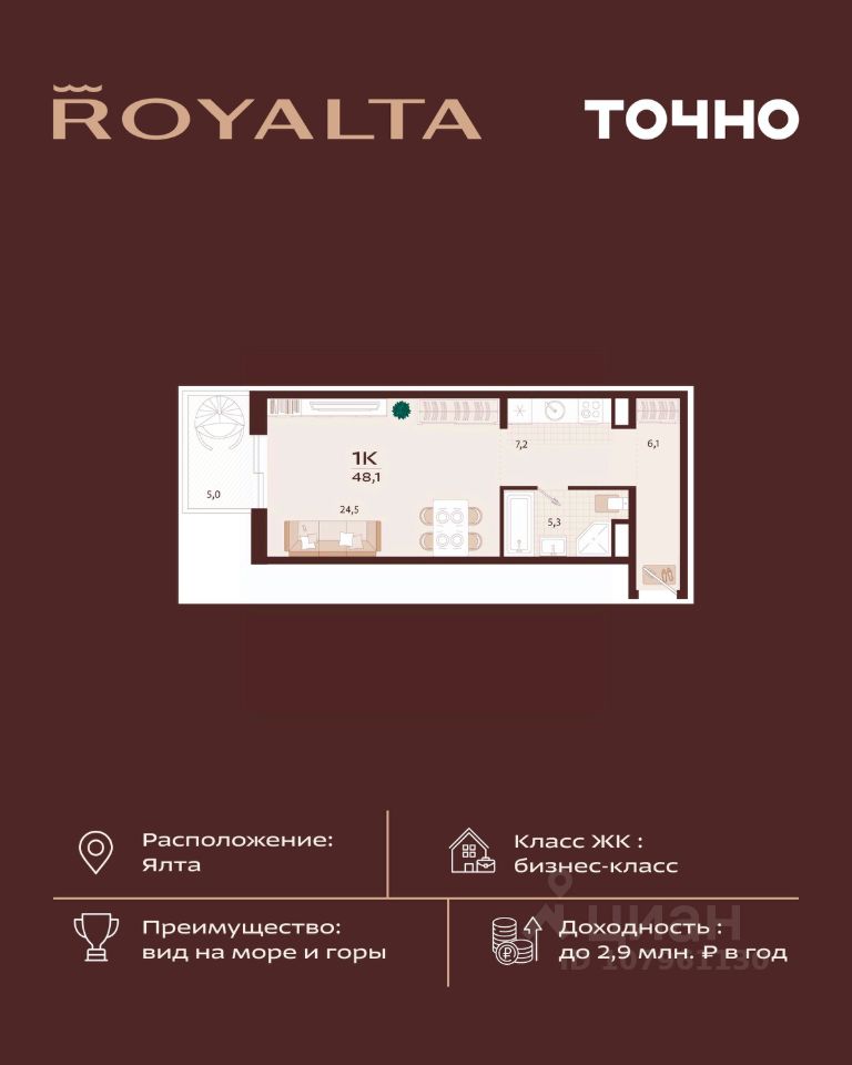продам 1-к, имени Спендиарова, 524 755 000 ₽