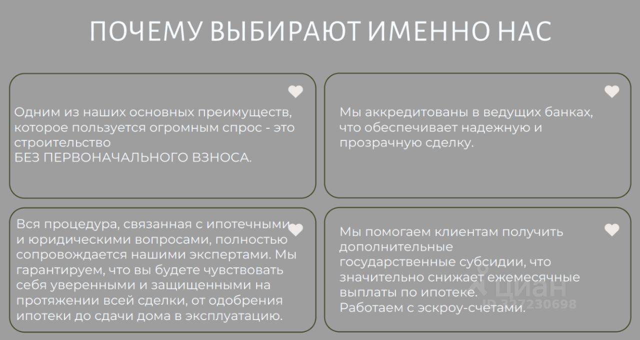 - Мы помогаем клиентам получить дополнительные государственные субсидии, что значительно снижает ежемесячные выплаты по ипотеке. Работаем с эскроу-счетами.