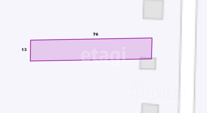 Участок имеет правильную прямоугольную форму 13 на 76 метров и ровный рельеф, что упрощает планировку и будущее строительство.