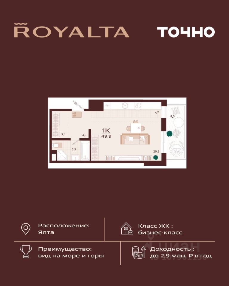 продам 1-к, имени Спендиарова, 524 764 000 ₽