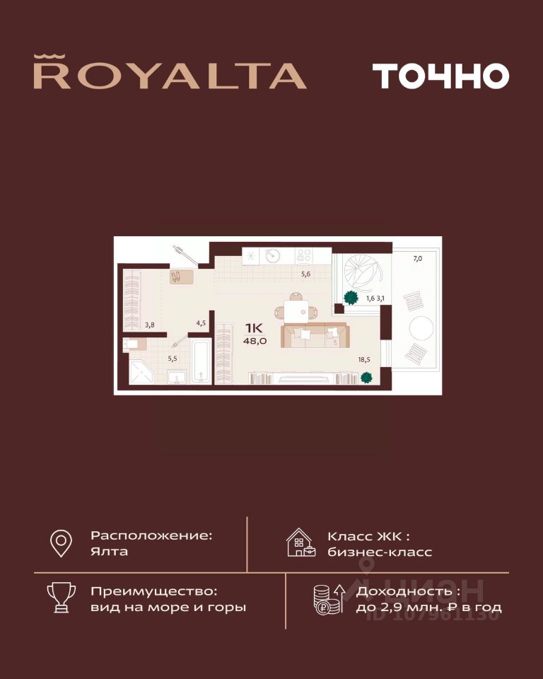 продам 1-к, имени Спендиарова, 526 248 000 ₽
