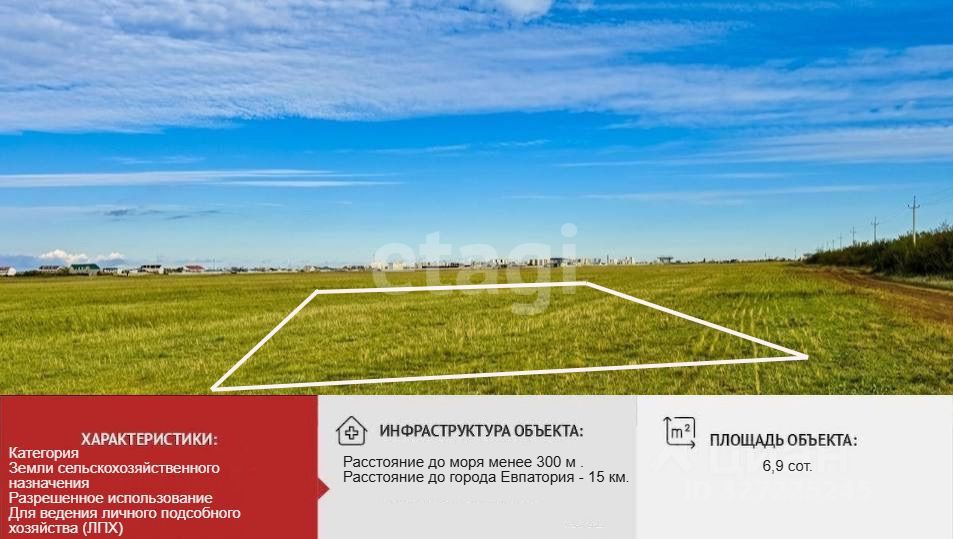 Расстояние до моря менее 300 м . Хорошее вложение для инвестиций. Расстояние до города Евпатория - 15 км. Рядом имеется вся необходимая инфраструктура: школа, детский сад, магазины разной направленности, шикарные пляжи , привлекают внимание туристов.