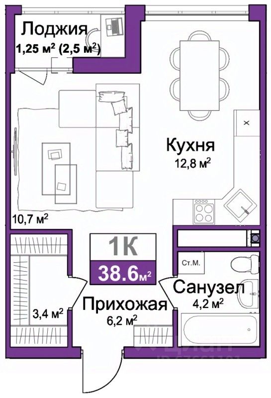 Общая площадь38,6 м2
